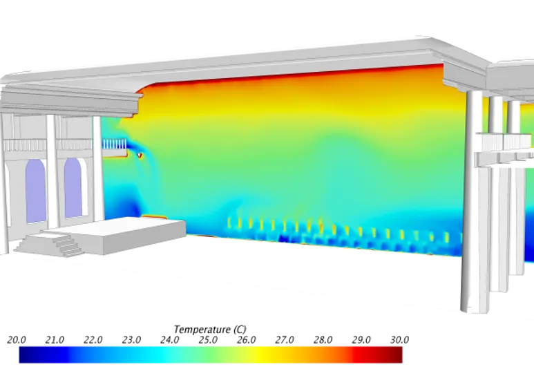После нескольких итераций моделирования температурных, скоростных и влажностных полей мы подтвердили, что наши решения по системам вентиляции и кондиционирования обеспечат требуемый микроклимат для предметов искусства.