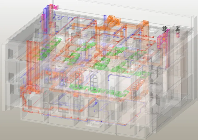 - Сохранили выставочные площади за счет оптимального расположения сетей вентиляции в венткамере благодаря BIM