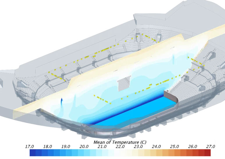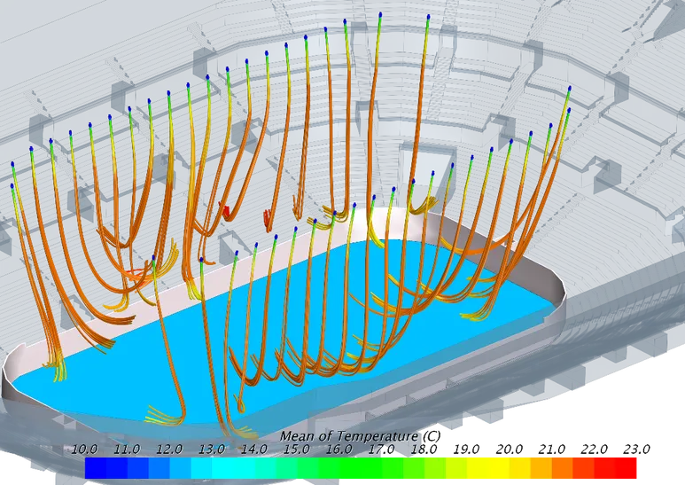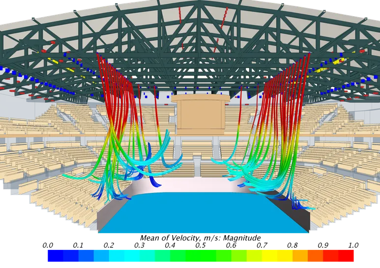 В ходе работы потребовалась корректировка проектных решений систем вентиляции и кондиционирования. Наши инженеры с математиками и физиками провели несколько расчетов, пока не определили оптимальное решение в части воздухораспределения. Это решение было оформлено в виде задачи и передано проектной организации Заказчика, которая внесла изменения в проектную документацию.
